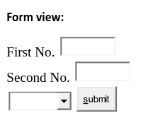 - Enter any number in number 1 and number 2, select any operator like add, Hit submit, you’ll be taken to this screen